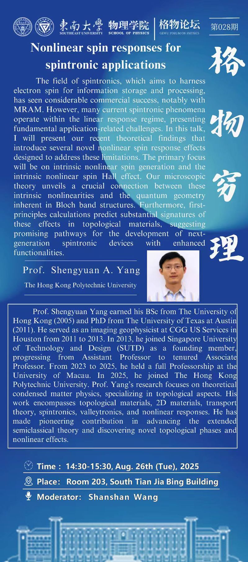 2025年8月26日14:30格物论坛|Nonlinear spin responses for spintronic applications