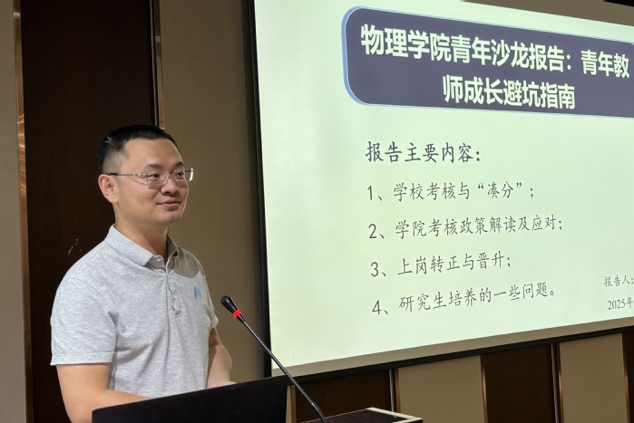 9月1日,新葡的京集团35222vip2025年第三期青年教师沙龙暨“事业发展与家庭”午餐会在田家炳楼平星报告厅成功举办。本次活动以“青年教师成长避坑指南——从考核达标到职称晋升”为主题,学院党委书记徐进、党委副书记唐瑭、副院长马亮、苗霖等领导班子成员与30余位青年教师共聚一堂,应用物理系主任郝祺教授担任主讲嘉宾。