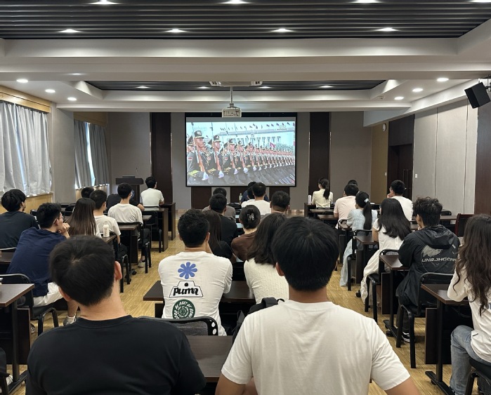 学院提前统筹安排观看场地与设备,确保师生有序参与。观看过程中,师生聚精会神,认真观看仪式全程。当英姿飒爽的受阅官兵迈着铿锵有力的步伐通过检阅台时,师生们深切感受到人民军队的威武气势;当各型先进武器装备列阵亮相时,师生们直观领略到我国国防实力的显著增强,民族自豪感油然而生。
