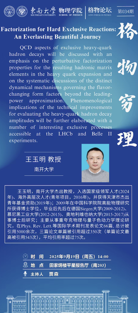 9月19日周五14:00格物论坛|Factorization for Hard Exclusive Reactions: An Everlasting Beautiful Journey