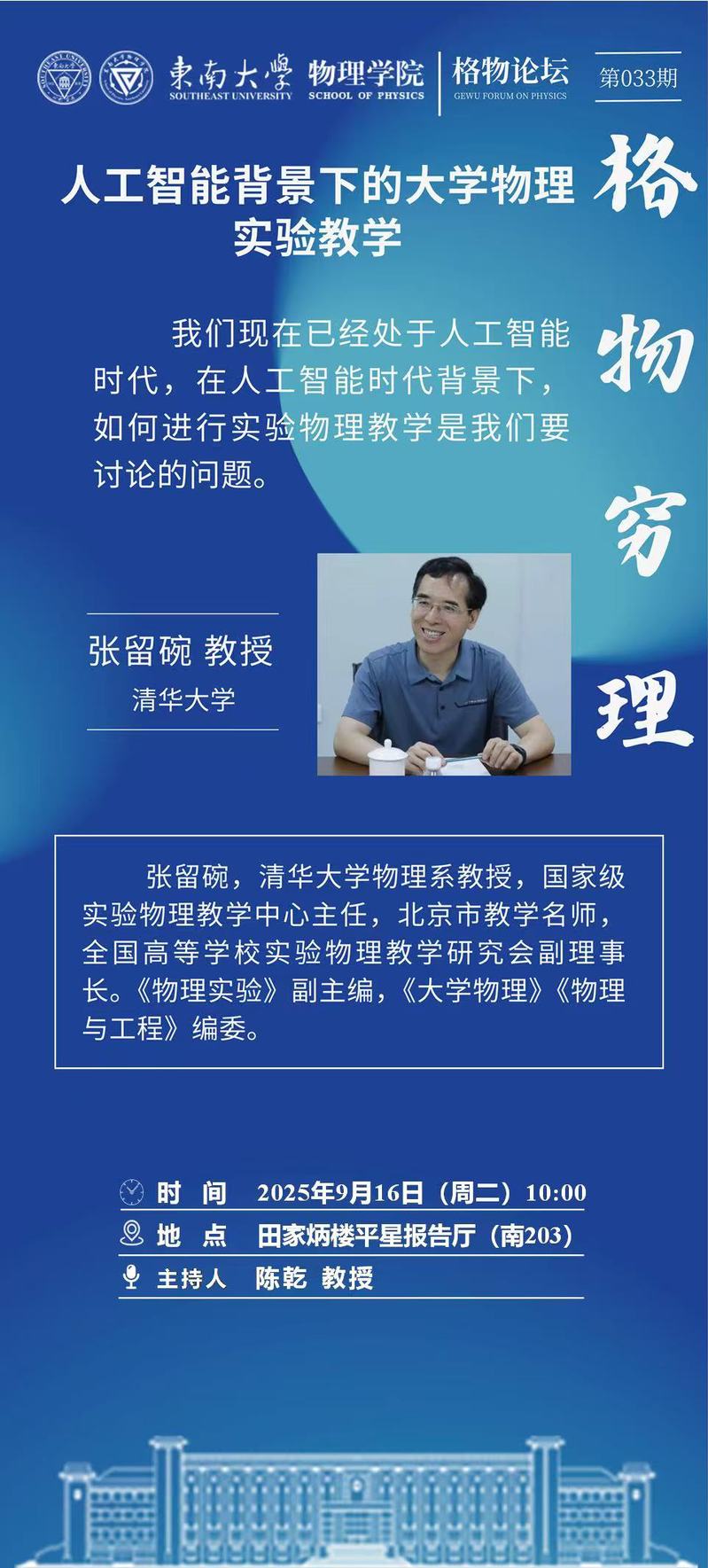 9月16日(周二)10:00格物论坛|人工智能背景下的大学物理实验教学