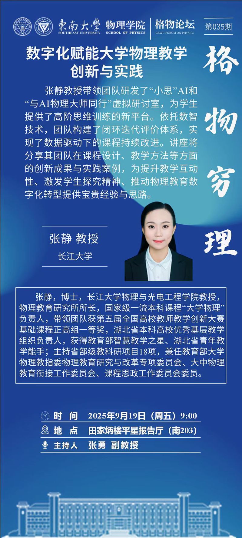 9月19日周五9:00格物论坛|数字化赋能大学物理教学创新与实践