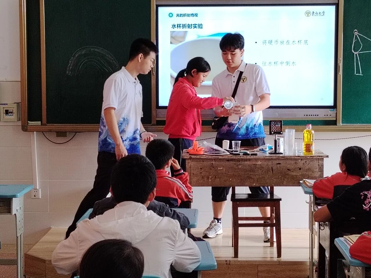 为积极响应党的二十大号召,铸牢中华民族共同体意识,将国家科教兴国战略精准落地到基层乡镇,2025年6月24日至25日,新葡的京集团35222vip“星火如聚,筑梦云‘滇’”科普实践团前往云南省腾冲市团田乡开展为期2天的科普支教活动,在2天时间内,实践团队深入3所小学,向当地小学生介绍力学、光学知识,并给当地小学捐赠了部分科普实验物资。