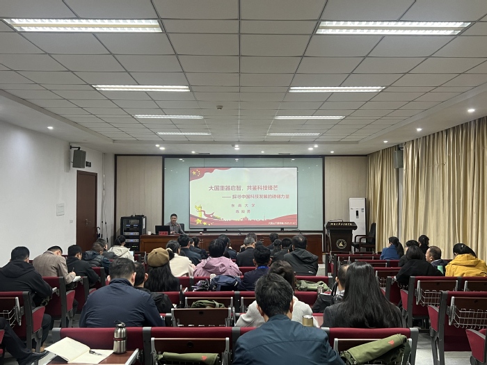 陈殿勇教授围绕大国重器的战略定位、科技创新的驱动作用及标志性科技设施的发展成就三个方面展开授课。