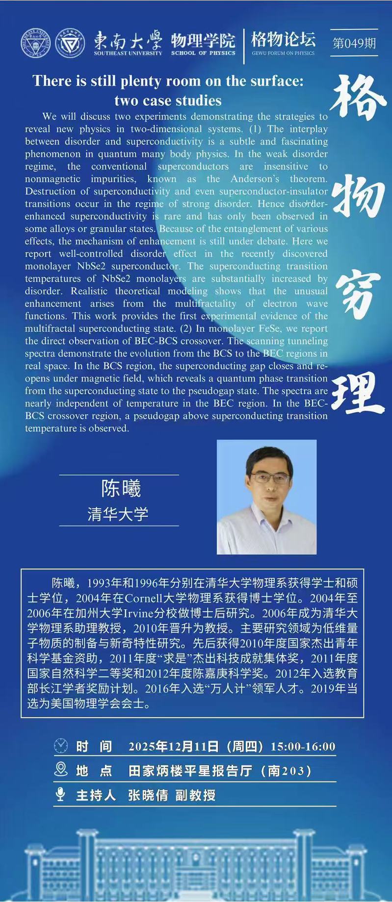12月11日周四15:00格物论坛|There is still plenty room on the surface:two case studies