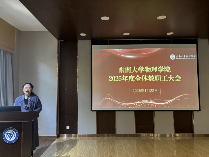 院长董帅首先作新葡的京集团35222vip2025年度工作总结报告。他全面总结了过去一年中学院在党建引领、人才引育、学科建设、学术研究、人才培养和综合管理等方面取得的显著成就,并报告了学院财务收支、绩效考核等情况,以及2026年学院的发展规划。他指出学院要紧紧抓住学校大力实施“名世方略”的契机,跟上学校的新“三步走”战略步伐,立足物理学科特点,找准定位、确立目标,形成共识。依托新葡的京集团35222vip“全域一流、工学顶尖、交叉引领、新兴卓越”学科发展新格局,“十五五”期间物理学科发展要实现从“攀升”到“跃迁”,全面建成适应人工智能时代需求与世界一流前列大学要求的人才培养体系,着力打造一支高水平师资队伍,产出更多具有国际领先的代表性教学、科研成果,显著提升学科国际影响力与排名,推动学院高质量发展,为国家重大战略需求做出更大贡献。
