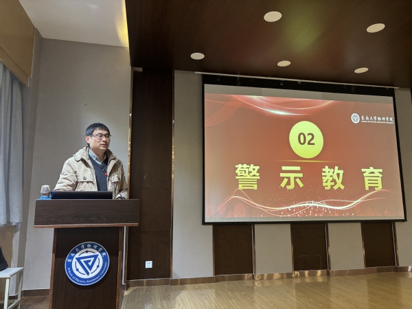 学院纪检委员陈殿勇开展廉政宣讲,集中学习《教师职业行为十项准则》《江苏省研究生导师职业道德规范“十不准”》,解读师德行为负面清单及对应的反面案例,进一步规范教师职业行为,明确师德底线。
