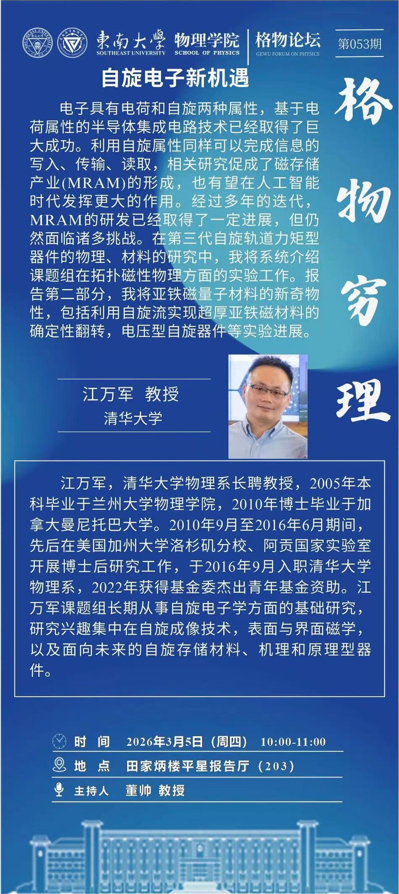 3月5日周四10:00格物论坛|自旋电子新机遇