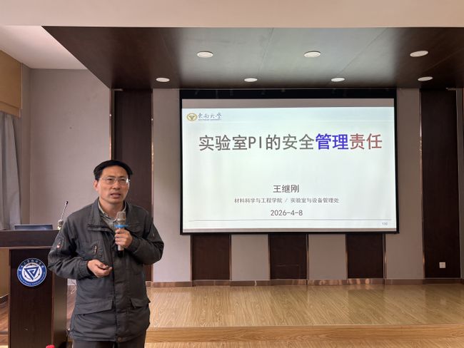 随后,王继刚副处长以《实验室PI的安全管理责任》为题开展专题讲座。他首先阐释了PI(Principal Investigator)的内涵,指出PI作为科研项目负责人,在国内高校与科研院所中通常为实验室负责人,在实验室运行与风险防控中承担不可替代的职责。王继刚副处长结合国内外高校与PI相关的典型安全事故案例,深入剖析事故成因与教训,直观呈现安全管理缺失带来的严重危害。他系统梳理了实验室PI的安全管理责任内容,并围绕“如何落实PI安全责任”提出三项核心要求,即“认识到位、工作到位、监管到位”。最后,他提出安全意识的提升路径:从“要我安全”到“我要安全”,再到“我懂安全”,最终实现“我能安全”,引导实验室负责人主动担当、科学履职。